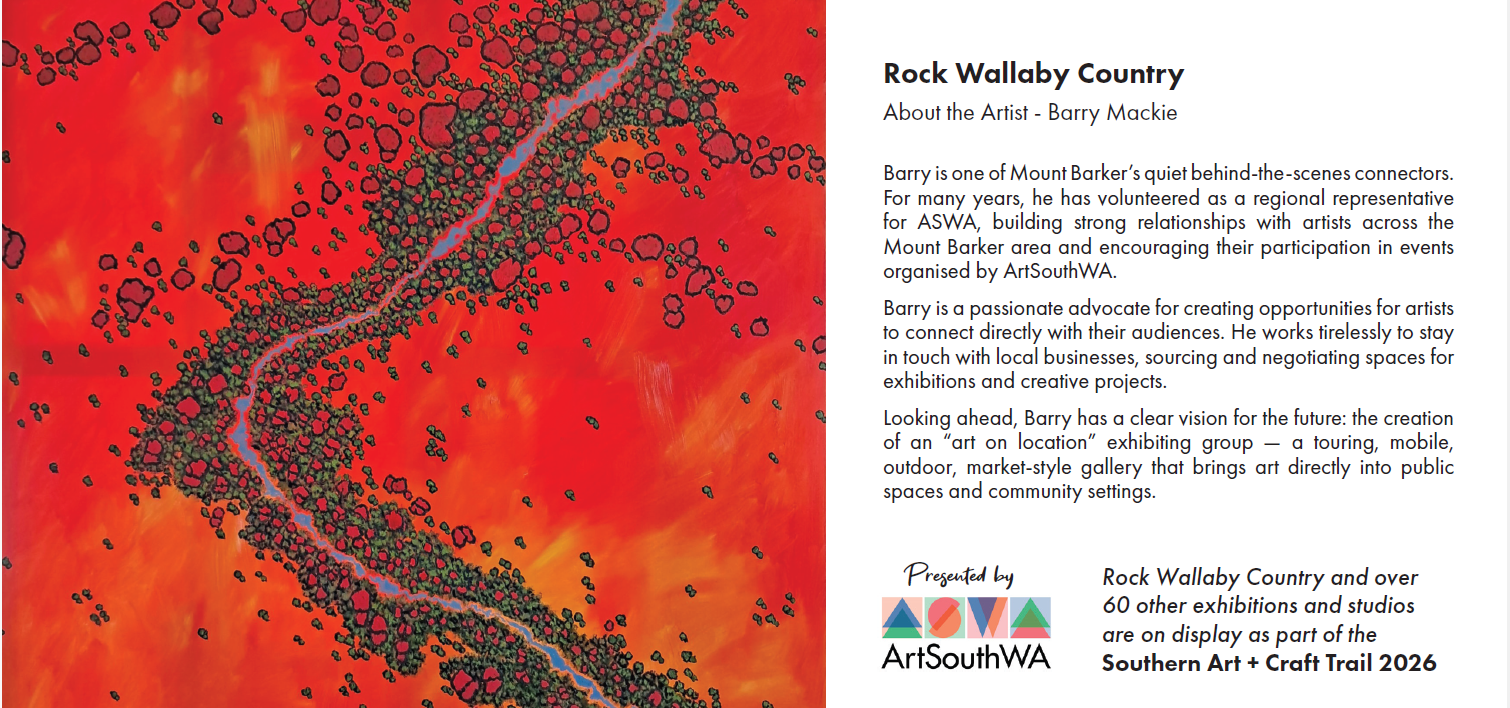 Congratulations to Barry Mackie, the 2026 Southern Art + Craft Trail cover artist.