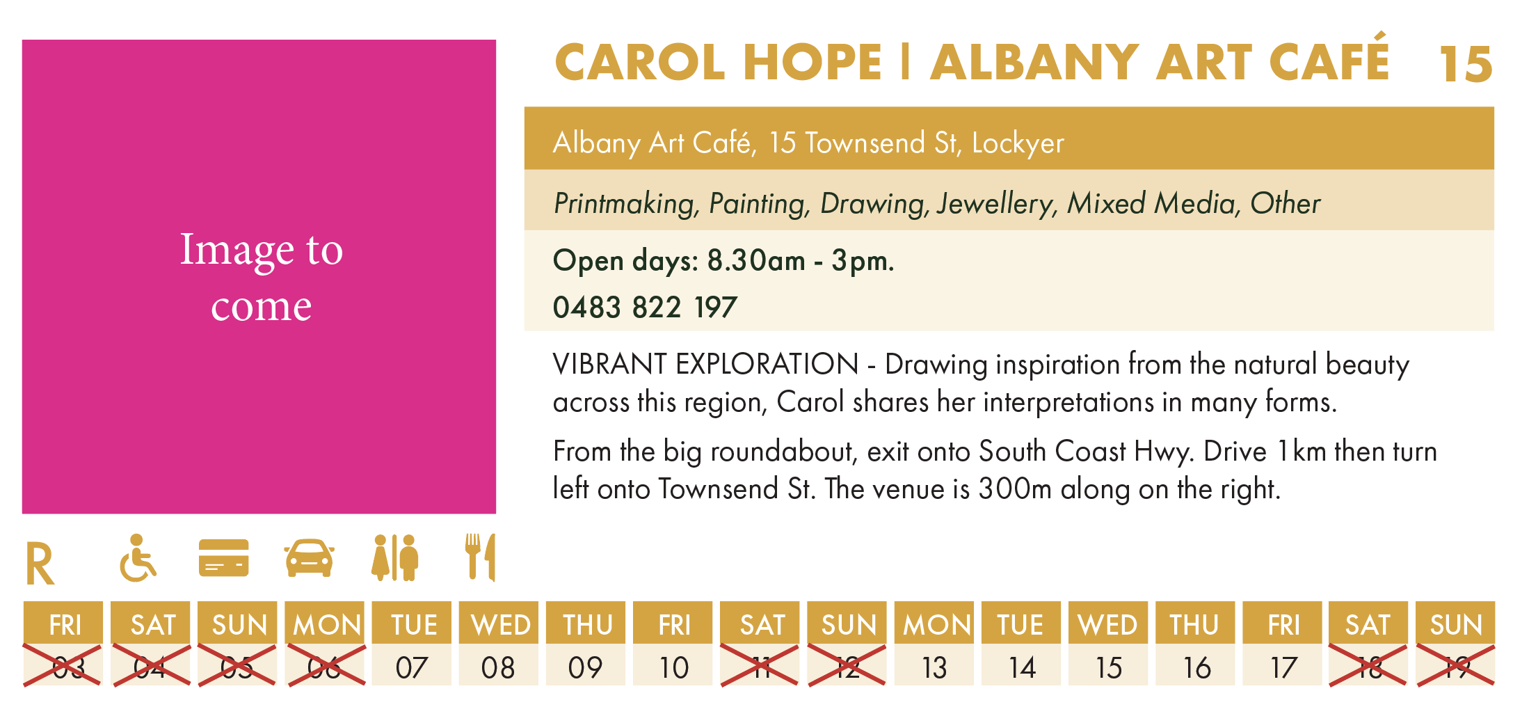 Carol Hope (Albany Art Cafe) at Beryl Grant Community Centre: Venue 15